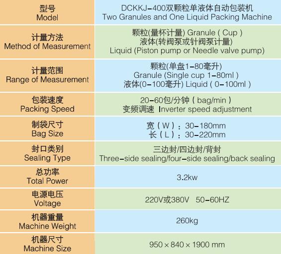 DCKKJ-400雙顆粒單液體三列自動(dòng)包裝機(jī)