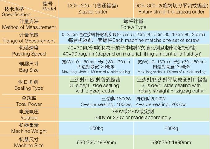 DCF-300-1/ DCF-300-2 平三邊封/四邊封粉末包裝機